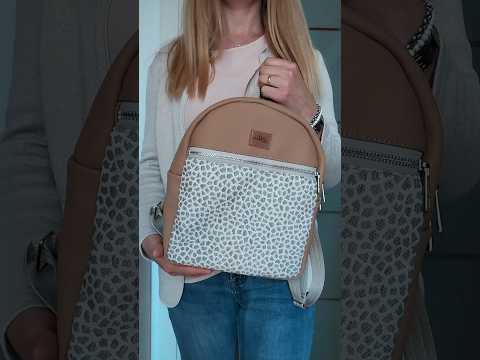Per chi ama la praticità ma non vuole rinunciare allo stile. Uno zainetto compatto, pratico e stiloso, rigorosamente fatto a mano. Un caldo color caramello in abbinamento ad un tessuto con fantasia animalier.